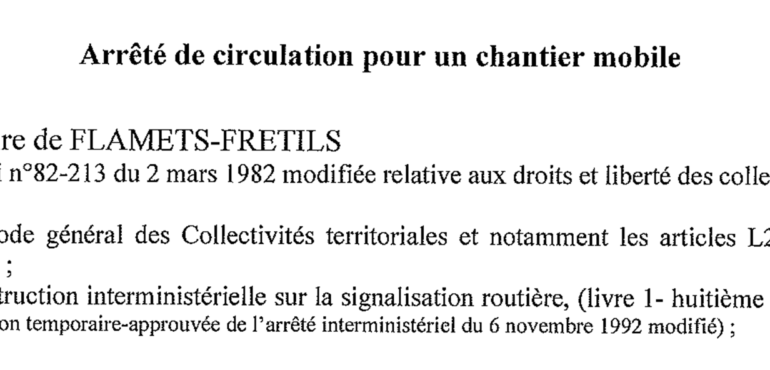 Arrêté de circulation Flamets-Frétils