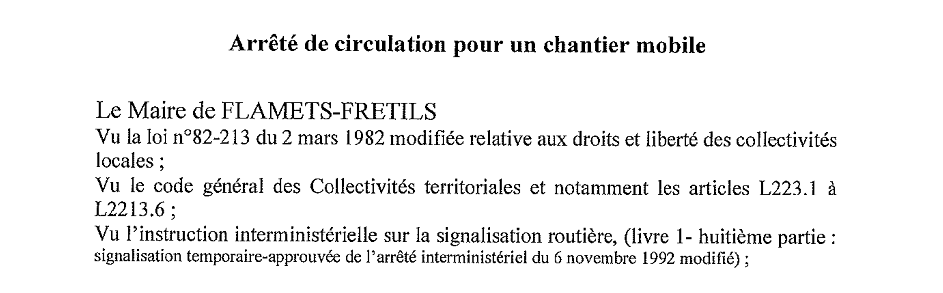 Arrêté de circulation Flamets-Frétils